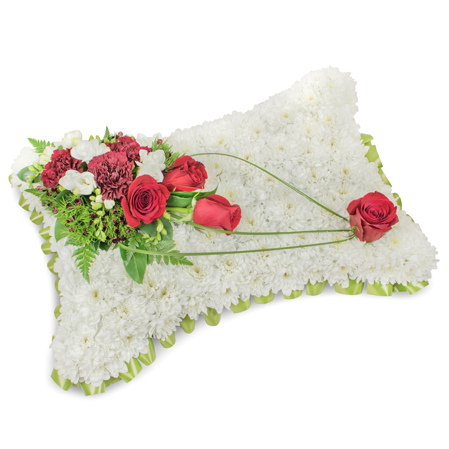 Offer a gesture of heartfelt condolence with this serene flower arrangement designed to communicate compassion and reverence. The bouquet features a harmonious mix of white chrysanthemums, red roses, white freesias, and dark red carnations, seamlessly complemented by dianthus and bear grass. Each stem is meticulously hand-selected to ensure optimum freshness and visual splendor.